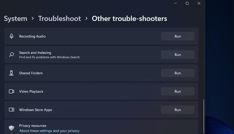 به پایین به Windows Store Apps بروید و روی دکمه Run برای آن عیبیاب کلیک کنید.