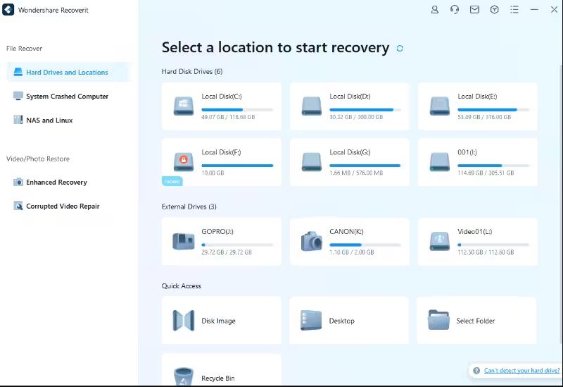 اگر راه حل فرمت کردن درایو خارجی را انتخاب کنید، تمام داده ها پاک می شود. اگر فایل های داخل هارد دیسک شما غیرقابل تعویض هستند و قصد دارید دوباره از آن ها استفاده کنید، می توانید تمام اطلاعات خود را بازیابی کنید. تا زمانی که حافظه درایو را با داده های جدید بازنویسی نکنید، داده ها قابل بازیابی هستند. برای بازیابی فایل ها، باید با استفاده از ابزار بازیابی اطلاعات ویندوز، عملیات بازیابی را انجام دهید و هیچ چیزی بهتر از Recoverit Data Recovery Tool by Wondershare نیست.