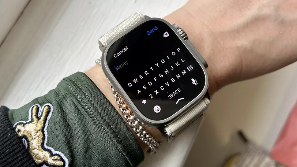 همچنین میتوانید از میکروفون داخلی ساعت برای ضبط پیام و ارسال مستقیم آن استفاده کنید – اگر حرفهای زیادی برای گفتن دارید مفید است. یا از صفحه کلید استفاده کنید – بسیار کوچک است، به خصوص اگر اپل واچ 41 میلی متری دارید، اما این کار را انجام می دهد.