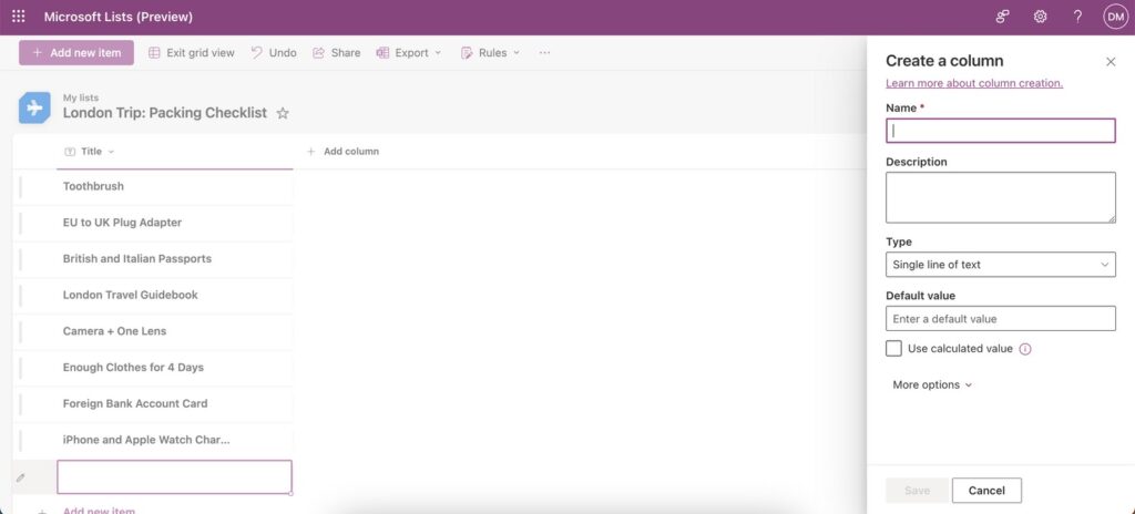 Microsoft Lists یک برنامه کاربرپسند برای ایجاد لیست هایی مانند لیست های مواد غذایی و بسته بندی سفر است.