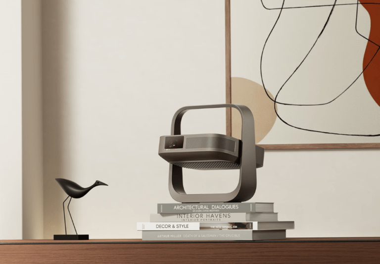پروژکتور Xgimi Z9X با رنگ قهوهای موکا و وزن تنها ۱.۵ کیلوگرم طراحی شده و ضخامت آن به ۷.۸ سانتیمتر میرسد. این دستگاه به یک لولا با طراحی گیمبال مجهز است که امکان چرخش تا زاویه ۱۵۰ درجه را فراهم میکند؛ بنابراین کاربر میتواند تصویر را روی دیوار یا حتی سقف نمایش دهد.